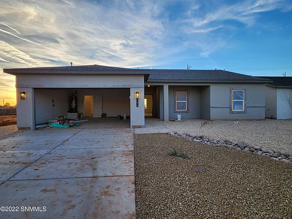 New construction home w/ 3 beds, 2 baths, & 2 car garage. Finishes include wood-look floor tile (carpet in the bedrooms), tiled showers/shower floors, granite countertops throughout, & cabinet hardware. Energy efficient upgrades include 2x6 exterior walls, blown fiberglass in exterior walls, spray foam insulated attic, low-E double paned vinyl windows, & high efficiency HVAC system. Nearly twice as efficient as a code built new home. Floorplan features open concept living, large kitchen w/ peninsula & corner pantry, double sinks in Owner's Bath, & spacious rear patio & back yard. Convenient location near Highway 70 on the growing East Mesa. Near NASA, White Sands Missile Range, schools, shopping, restaurants, hiking, ATV trails, Organ Mountains-Desert Peaks National Monument, & White Sands National Monument.