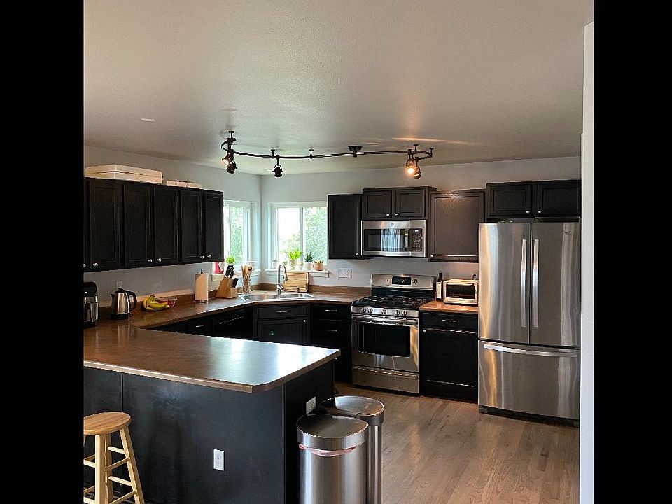 A charming, Fully-Furnished family house at the end of a cul-de-sac. Great views of Pikes Peak and a large backyard. The house also features an office, a large master bedroom with a walk in closet and a grill out back. All kitchen appliances are new and the dryer and washer are also new. The property has Wifi and includes a playstation with a couple of games. The couches in the living room are also new. The garage will be unavailable for use but parking is available in the driveway for two cars. The cul-de-sac has additional parking spaces. No pets, smoke outside please. Household items from the homeowners will be stored in the unfinished basement. The house is fully furnished. Rent is due at the beginning of the month. Cleaners and landscapers may visit the property twice a month. The tenant is responsible for keeping the inside of the house clean. Homeowners will move back into the house after 6 months.