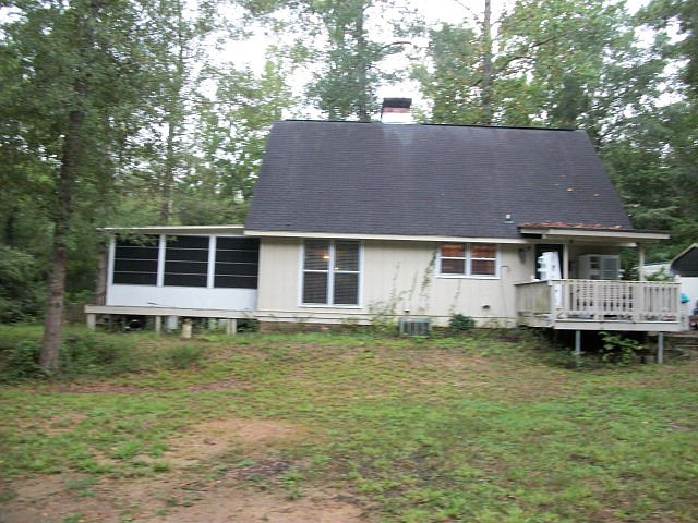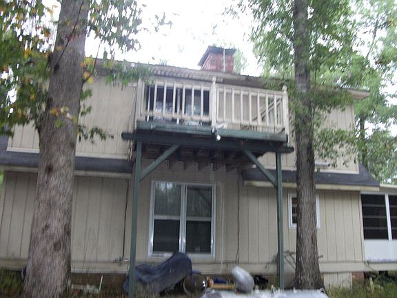 This adorable bungalow snuggles on nearly 3 acres of, mostly wooded property. The home is adorable with two loft bedrooms, a country kitchen with open beams and a balcony porch. The railing has hearts cut outs in the slats. The property and exterior could be absolutely wonderful. The flooring is laminate and tile. There is a covered front porch and the storage shed remains. This is the perfect home for retirees, a getaway or family. The neighborhood includes several lakes.