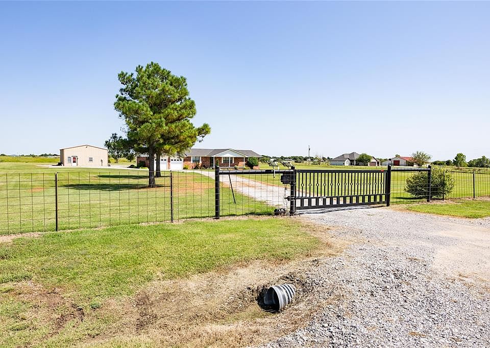 Discover the perfect blend of country living and modern comfort in Union City. This 3-bedroom, 2-bath home has a large, updated kitchen and living area. The home sits behind an automatic steel gate on cleared land with cross fencing, a pond, and frontage on an asphalt road. The main home features a spacious layout, a two-car garage, and a large screened-in back porch ideal for enjoying Oklahoma sunsets. A separate metal shop includes a fully self-contained 2-bedroom apartment with its own kitchen, full bath, laundry, and central heat and air—perfect for guests or multi-generational living. Additional highlights include a gravel driveway, a west-facing orientation, and a storage shed for extra convenience. This property offers room to spread out, relax, and enjoy rural living while staying connected with modern amenities.