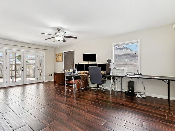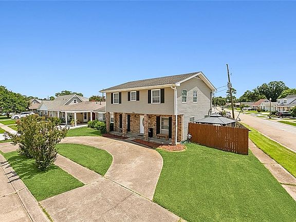 Walking distance to Lafreniere Park!! Wonderful home on a corner lot has circular drive as well as rear yard access. This nice 3 bedroom home has 2 full baths and a convenient 1/2 bath downstairs. Formal living (being used as office space now) and formal dining room. Spacious den with vaulted ceiling has a fireplace with a gas starter and is open to the kitchen. Convenient laundry is accessible to the den and also has outdoor access. Kitchen includes ceramic tile, granite counters, stainless gas range and refrigerator. Wood plank tile in living room, dining room and den downstairs. Upstairs has original wood flooring in all bedrooms and hallway. 3 bedrooms upstairs with 2 full baths. Primary includes walk-in shower, a jetted tub, double vanity counter and a walk-in closet. Outdoor space has a covered patio with fans and a gazebo for entertaining. Double car garage was converted to office space and is air conditioned by a window unit. Previous garage had a kitchen, plumbing is still in place beneath sheetrock. Many options available for usage including continued office space, man cave, gym, teenager hideaway etc! Convenient storage shed for lawn equipment too!