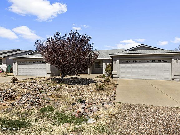 Great Investment Opportunity! Explore this fantastic duplex located in Prescott Valley Unit 18, offering exceptional income potential. Each unit features 1,055 square feet of living space, comprising 2 bedrooms and 2 bathrooms. The attached 2-car garages provide convenient parking and storage solutions. Enjoy the spacious backyard, perfect for outdoor activities and gatherings. Inside, discover spacious family rooms, practical kitchen/dining combos with patio access, and generously sized master bedrooms with en suite bathrooms. Unwind on the covered patio, ideal for enjoying the beautiful weather and serene surroundings. Don't miss out on this opportunity! Schedule a viewing today.Note: LG Washer, dryer, and kitchen refrigerator in unit 1 do not convey. Washer and dryer in unit 2 DNC.