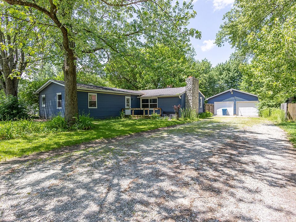 Welcome to this 3-bedroom, 2-bathroom ranch nestled on nearly half an acre surrounded by mature trees. As you step inside, you'll be greeted by a spacious living room featuring a cozy fireplace, perfect for relaxing evenings with family and friends. The large primary suite includes an en suite bathroom featuring an oversized garden tub. The two additional bedrooms are generously sized, providing ample space for family, guests, or a home office. A second bathroom with a walk-in shower ensures convenience and comfort for all. The kitchen will fit all of your needs with its generous counter space and cabinets. Outside, you'll find an awesome yard that offers endless possibilities for outdoor activities and gardening. The property also includes a large 2-car detached garage, providing plenty of storage space and parking. Situated on a quiet dead-end road, this home promises a peaceful living environment while being just minutes away from shopping and easy access to the interstate. With no HOA restrictions, you have the freedom to truly make this home your own. Don't miss the opportunity to own this delightful ranch in a prime location!