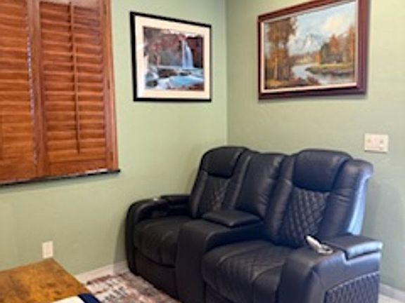 Unique 1 bedroom, 1 bathroom fully furnished guesthouse in northwest Tucson, AZ. You will enjoy the comfortable movie theater seating in the living room and dining area the looks out at the community property indoor pool and spa or relax outside in the backyard. There is a dining area outside as well with mountain view. The modern kitchen is fully stocked with small appliances and housewares and features a gas range. Stackable washer & dryer is also available for your use. Bedroom has a queen bed and you have access to the rooftop deck for sunbathing or to enjoy the sunset and sunrises here in the beautiful desert. RV parking space is available and close proximity to hiking, biking, shopping & so much more.