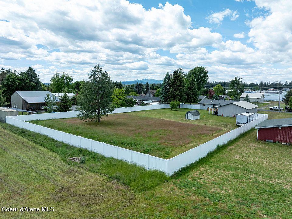 Quaint single level home, remodeled in 2021. Spacious primary ensuite bedroom. Sunny kitchen with custom cabinets. Newer gas furnace. Newer roof. Newer detached 52' X 28' SHOP is divided to provide BOTH a 29.5' X 28' heated workshop with 220V power AND a 22.5' X 28' garage. Both are insulated and a finished with concrete floors. All this on a Dalton Gardens acre (.94), that is enclosed with vinyl privacy fencing, and offers Dalton Irrigation. Mountain views. Superb location. Move-in ready!