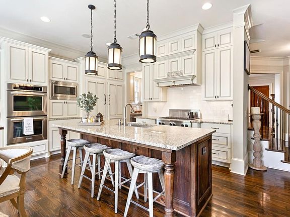 - Kitchen Features: Breakfast Bar, Eat-in Kitchen, View to Family Room, Stone Counters, Kitchen Island, Cabinets White