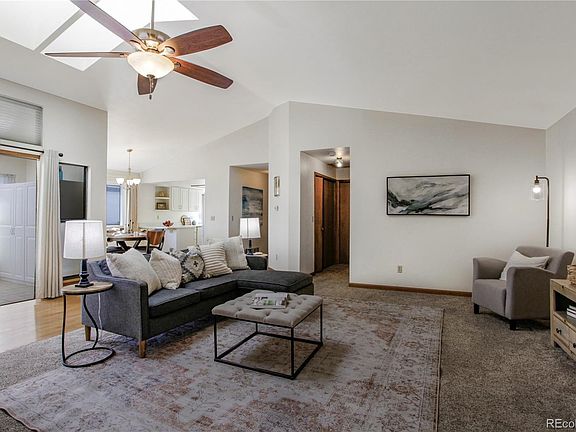 If you are looking for the simplicity of one floor living, this wonderful Arvada ranch home is the place for you! With an attached two-car garage, an enclosed sun room with an easy to maintain yard and Trex deck, this two bedroom, two full bathroom home is available for immediate occupancy. This wonderful home features a nicely updated kitchen with white cabinetry, a cute corner sink surrounded by two windows and gleaming wood floors. Off the kitchen, is your dining room, with built-in cubby shelving, the perfect place to display all your favorite knickknacks. The focal point however, is the spacious living room, with vaulted ceilings awash in plenty of natural light from the three skylights plus the additional light afforded from the adjacent heated sunroom's windows. This living area also features a ceiling fan and a wonderful gas fireplace with a sleek naturally stained wood mantel, the perfect way to take the chill out on those cold winter evenings. The primary bedroom, located at the rear of the home, also has vaulted ceilings and is complete with its own bathroom with a subway tiled tub surround, dual closets and a private water closet, with additional built-in storage. The second bedroom, located near the front of the home, is the ideal set up for guests or family members needing additional peace and quiet, or could easily be used as a private office too. Just around the corner from that bedroom, is another full bathroom, with tiled floors and tub area, all located across from the laundry closet, which includes the newer washer and dryer. This home is situated on an easy to maintain fully fenced yard with sprinkler system and the Trex deck boasting a newer retractable awning for added afternoon shade. Conveniently located near parks, shopping and all that Arvada has to offer, this home is clean and in move-in condition. Schedule your private showing today!
