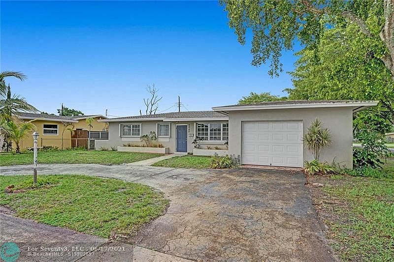 Incredible opportunity! This SUPER spacious 4/2 w/1 car garage on corner lot has great bones and all the major pieces in place. 1950 sqft. Main & flat roofs replaced in 2017, A/C 2017, gas hotwater heater 2019 & updated electric panel. Hurricane ready with impact garage door & accordion shutters. Termite warranty. Municipal sewer. Living room, formal dining AND oversized family room. This gem is just waiting for the perfect buyer to add their cosmetic updates. LOADS of potential in this one! Freshly painted interior with polished terrazzo flooring. Spacious BRs with private bath in Master BR. 4th BR being used as entertainment room with custom wood bar, built in tables & desk space! First offering from the same owners for many years.