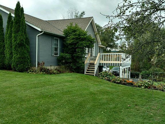 Welcome Home to this Contemporary Raised Ranch on 3.71 acres. Open and generous floor plan with great lake views and vaulted ceilings. Granite kitchen and fully finished walk out basement leading to the stamped concrete patio area that overlooks the pond with dock and boat house. This home has the perfect location for all your outdoor entertaiing and peaceful enjoyment. See through fireplace is enjoyed from the family room area and owners suite. The adjacent 2 bedrooms share a jack and jill bath. Along with the expansive square feet, There are many extra rooms throughout this gorgeuous home to call your own. There is also a 22x30 outbuilding as well for all your extra storage needs. Too many great nuances of this home to list. Improvements include septic 2016, roof 2013, furnace 2016. Nothing left to do, but move in!