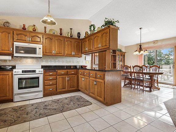 A wonderful walk-out Rambler w/ 100ft of shoreline on Long lake. The open floor plan features vaulted ceilings, large living room & dining room with great views over looking the lake. Custom oak cabinetry & granite counter tops in the kitchen and ceramic tile floors throughout most of the main floor. The large lakeside bedroom features oak flooring and easy access to the main bathroom that offers a roll-in tiled shower and a senior style soaking tub. You will enjoy the 26x14 composite deck and the main floor laundry room. The lower level is great for entertaining friends & family with the walk up bar area, large family and Rec area that walks out to a nice level backyard patio & yard. The large 3rd bedroom and workout room is also great space! You will appreciate the sandy lakeshore, tiered retaining wall and the 16x16 sitting deck the waters edge makes for great times by the lake.