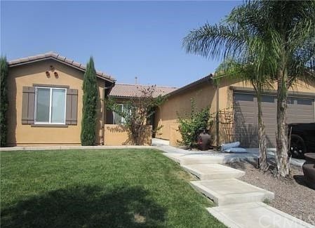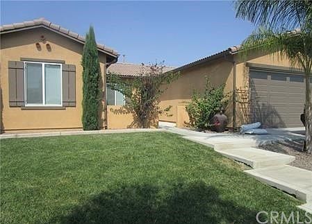 Nice Single level home in a great Eastvale location. Modern style home built in 2011 complete with solar system. Laminate wood floors throughout, dark cabinetry, stainless steel appliances. Three bedrooms with an office/den. Large lot and nicely landscaped. Located in a quiet community and nicely landscaped homes. Low maintenance yards.