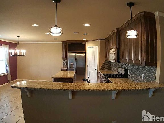 Spacious dream kitchen in this wonderful new home with gorgeous alder cabinetry, center island, and walk-in pantry. Granite tops, gas cooktop, large dining and breakfast bar...opens to family room with corner fireplace and real oak wood floors! Master suite has large walk-in closet and luxurious bathroom with jetted tub, double vanities, and granite counters. Storm shelter in garage. Nice covered patio! Located in the heart of OKC within minutes of everywhere you want to be! Neighborhood park and pool!