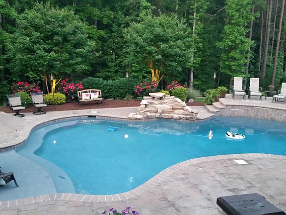Entertainment Paradise w/ salt water pool, fountain, waterfall, fire pit, screened porch w/firepl on fenced culdesac lotl! Custom estate w/open flr plan! Hrdwds in living areas. DR w/ lighted dbl trey ceil. LR w/coffered ceil & firepl. Grand FR has vaulted ceil w/beams & firepl opens to Chefs Kitchen w/subzero frig, 6 burner gas c-top w/grill, dbl ovens & wine cooler. Huge 1st flr Master w/trey ceil & firepl has spa bath w/heated tile flr, jetted tub,dual vanity & sauna. 1st flr Study. Theater. Comm pool!