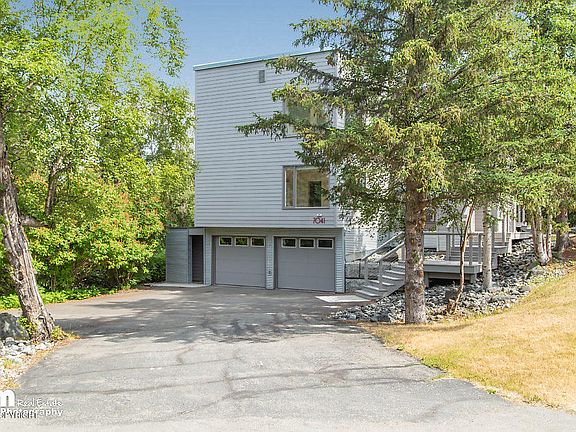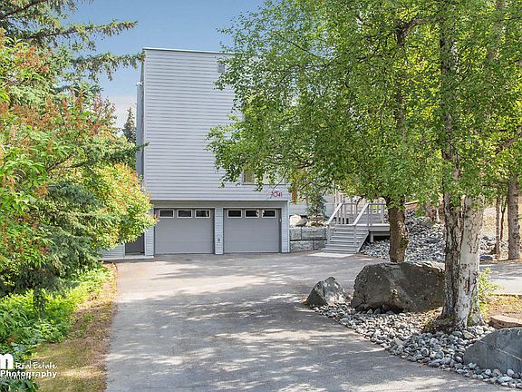 This modern, 3-story, Lower-Hillside home has amazing vaulted ceilings and lots of natural light. The private, 4 bedroom, 2.5 bath home with 2-car garage sits on nearly 3/4 of an acre and backs onto a greenbelt. Enjoy the tranquil Zen garden and mature landscaping. It is conveniently located near great shopping, restaurants, great schools, the Anchorage Zoo, O'Malley Golf course, and so much more.