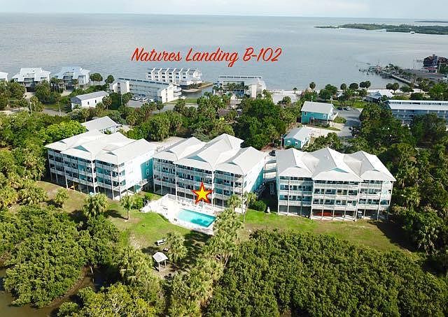 "This Place Rocks!" wrote one guest. "Enjoyed the quiet Sunday evening very much", said another. New ceramic tile flooring in the living-kitchen area, a new over-size flatscreen TV on a new media center with an electric fireplace, plus a new upscale washer and dryer, are all indicative of the condition of this condo. Condo B-102 and its parking space are both just a few convenient steps from the elevator. All of this is one of the most natural settings in Cedar Key. Great for kayaking. Good fishing from the dock on the channel. Brown pelicans, ospreys, egrets and gulls are everywhere. Eagles are not uncommon. White pelicans and roseate spoonbills often visit. All just minutes from great restaurants and shops!