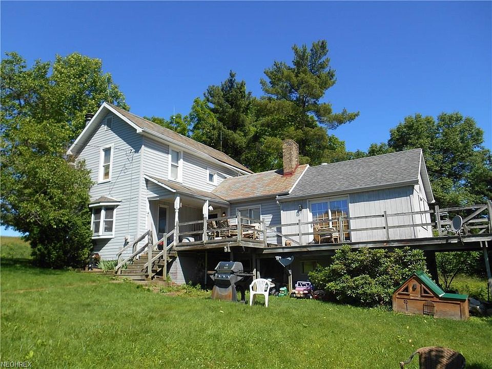 Enjoy country living in this nice farm house sitting on a beautiful 6.8 acre property with a large 28 x 40 bank barn, shed, and a 20 x 26 garage. Main level has a living room with stone fireplace, an eat in kitchen, a family room with cathedral ceiling and patio doors leading to a wrap around deck overlooking the property, a 1st floor master bedroom and a full bathroom. Upstairs has 2 more nice sized bedrooms with plenty of closet space. The walk out basement is partially finished an has an in law suite/bonus room with its own full bath. Other features include a forced air furnace, A/C, a wood burner in the bsmt. that is tied into the duct work, a stream running thru the property, and more. The possibilities are endless with this one. Tusky Valley Schools