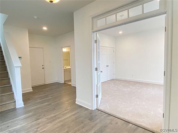 The Grove by Main Street Homes! Energy Star certified 3 story end unit townhome offers 3 bedrooms, Study, 3.5 baths, fireplace, oak stairs from 1st to 2nd level, rear entry 2-car garage, tankless water heater, rear deck, low maintenance vinyl siding, and first and second floor front columned porches. The first floor includes a study, full bathroom, and coat closet. The second floor open concept offers a powder room, large great room with fireplace, dining room, and gourmet kitchen complete with granite countertops, ceramic tile backsplash, stainless-steel appliances, and a large 8’ island. The third floor includes a spacious primary bedroom with 2 walk-in closets and ensuite bathroom with ceramic tile shower and double bowl vanity, 2 additional bedrooms, full bathroom, and laundry room. Cosby Village amenities include a clubhouse with fitness center, a resort style pool, dog park, community garden, paved sidewalks with pocket parks, and walking trails. Cosby Village will give you low maintenance living right off Hull Street Road and Otterdale Road in a top ranked school district near shops and dining.