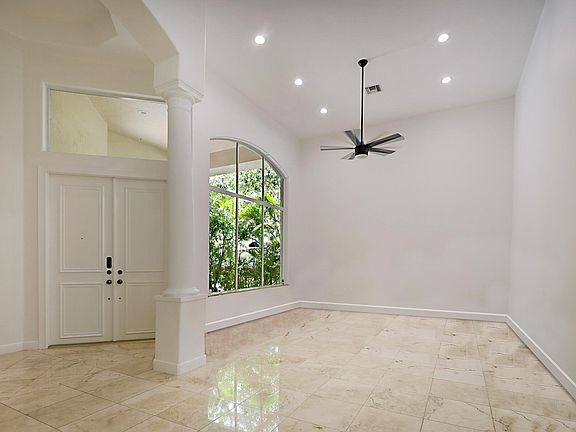 Beautifully maintained one story 3BR plus den/convertible fourth bedroom home situated on a corner lot with lake views. This residence features volume ceilings with plenty of natural light. The split bedroom and open floorplan is perfect for entertaining and features both a living room and separate family room with a custom built-in. The kitchen boasts stainless steel appliances and granite counter tops. The primary suite includes his/her closets and an elegant bath. Two other bedrooms share a Jack and Jill bath and there is a den which is easily convertible to a fourth bedroom. This home is in close proximity to great shopping, fine dining, and houses of worship. Come and experience all that Boca Grove has to offer.