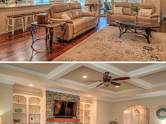 7041 Turtle Cove Drive is a custom 4 bedroom 3 bath home located in the exclusive gated ICW community of The Bluffs on the Waterway. This beautiful home boasts an open, split bedroom floorplan with a view of the lake. Upon entering the wide foyer, you are greeted by the spacious and elegant main living area that includes a stone fireplace, coffered ceiling, built in cabinets and shelves and wood flooring. The chef in the family will love the gourmet kitchen with custom glazed cabinets, granite countertops, large pantry and upgraded stainless steel appliances. The large master suite with his and her walk-in closets, and a double tray ceiling with built in soft lighting. Rental pay for water, gas, electricity, mowing lawn, and keeping outside the house clean. No smoking, cannot park on the street