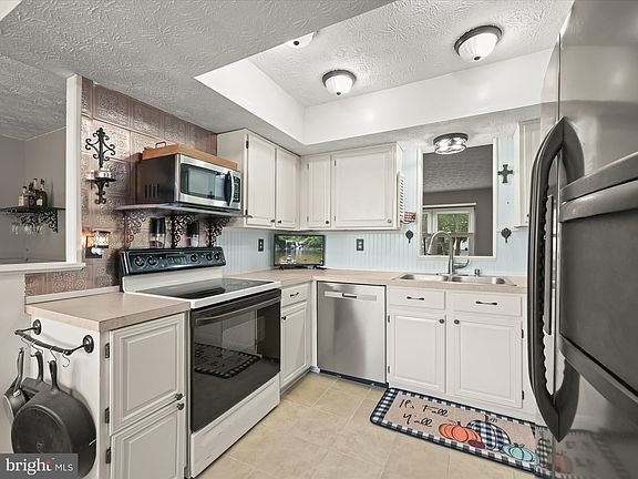 Discover this spacious end-of-row townhome nestled in the desired Kings Meade community of Columbia, boasting no CPRA fees and many updates throughout including the roof, HVAC, water heater, primary bathroom, wood flooring, carpet, dishwasher, and dryer. This home begins with a spacious living area featuring wide plank wood flooring and a charming wood-burning stove, offering warmth and ambiance for cozy gatherings. The heart of the home is the kitchen, anchored by an island breakfast bar that seamlessly connects to the dining area which provides access to the expansive deck. Beautiful decorative tile backsplash, a new stainless dishwasher, and a French door refrigerator with an icemaker and water dispenser, add both style and functionality to this culinary space. Upstairs, the primary suite impresses with its soaring vaulted ceiling, generous walk-in closet, and updated full bathroom, creating a serene retreat. Two additional bedrooms, both with vaulted ceilings, and a stylish full bathroom complete the upper level. The lower-level family room highlights a wood-burning fireplace and walkout sliding door to a private, fenced backyard and patio, ideal for outdoor living and entertaining. Seller willing to offer $3500 concession to buyer for carpet allowance at settlement.