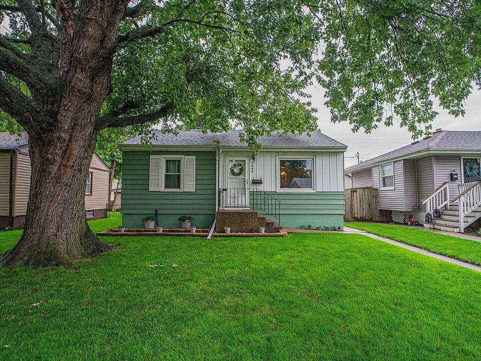 Beautifully updated and maintained ranch home in a desirable location of Hammond, IN. This home features 3 bedrooms, 1 bathroom, nearly 110 finished square feet, an unfinished basement, FENCED IN YARD, and 2.5 car detached garage with COVERED PATIO! The main level offers a spacious living room, separate large dining area, and an OPEN CONCEPT. The kitchen has been renovated with ample white cabinetry, coffee bar area, GRANITE COUNTERTOPS, and stainless steal appliances! There are three main level bedrooms and a renovated full main level bathroom. The unfinished basement allows for storage area or potential for more living space. Other features include the fenced in back yard, covered patio, 2.5 car garage, and much more!