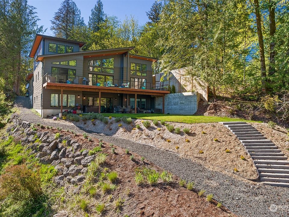 Experience the elegance of the PNW luxury lifestyle in this stunning custom home. Upon entry, you will be awe struck by the 22’ ceilings and window wall overlooking the Puget Sound. The expansive chef’s kitchen boasts quartzite counters, high end appliances, walk in pantry and custom built cabinets. Primary suite on main floor features a spa inspired bath with deep soaking tub and steam shower, spacious walk in closet and bedroom with deck access and sweeping views. Cinema room, 2 beds and bath are connected by a large bonus room that can be easily configured for a multigenerational living space. Loft suite offers privacy and comfort for guests. Observe the alpenglow of Rainier from the oversized deck or the lower patio hot tub.