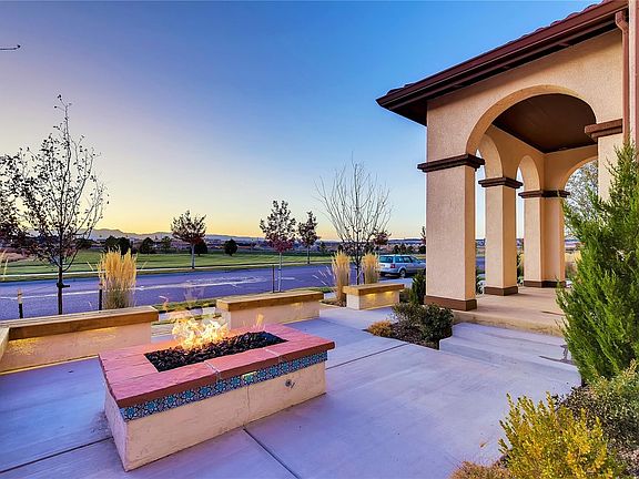 A truly ONE OF A KIND home in Banning Lewis Ranch. One of the few John Laing homes in the area. This is your opportunity to own a very special, custom home where no detail has been overlooked. This former model home was also featured in a past Parade of Homes. Custom patio areas, with ample seating, basketball hoop, custom lighting and landscaping, outdoor fireplace and gas fire pit. Within walking distance of the Ranch House and elementary school. The spacious kitchen is open to the living room and dining area with sliding glass doors opening to the outdoors. Finished basement including a bedroom, full bathroom and a family room featuring a wet bar. Breathtaking views. Corner lot, neighbors only on 2 sides. The Banning Lewis Ranch community includes a resort-style Ranch House, 24- hour fitness center, swimming pools, tennis courts, miles of walking trails, numerous parks including a splash park and dog park. Enjoy summer concerts, farmers markets, award winning schools.