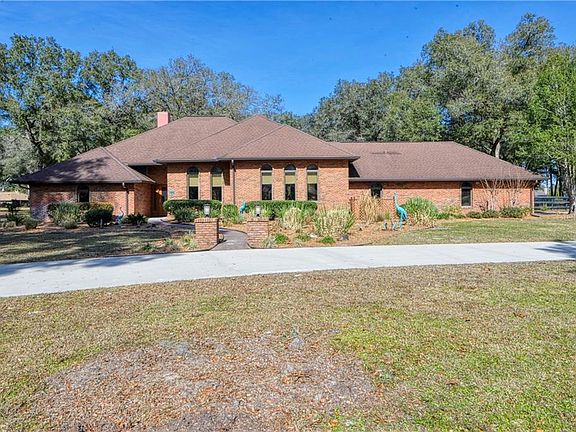 Enjoy the Ocala Lifestyle in the Gated Equine Community of "Countryside Farms". Homes in this neighborhood don't last long on the market. It is the only Gated Equine Friendly community located literally just 5 minutes from shopping, dining, hospitals and only 8 miles from the New World Equestrian Center. Enjoy the peace and quiet with all the conveniences of town right outside the gate. Situated on 3 private acres ..this Custom Brick on Block home is timeless featuring unique architectural details you will not find in any other home this age . With the extensive upgrades and improvements the home is truly age defying. 3 Bedrooms and 3 full Baths. It has an open concept with high ceilings and an abundance of Anderson windows allowing natural light to flow through with great views all around. This home is set up for entertaining with a Large Living room featuring a Brick fireplace and french doors that lead out to the Courtyard with a Pavilion.. It has a Formal Dining room next to a spacious Great room that adjoins the impressive remodeled Kitchen with Beautiful Quartz counters, a farm style sink with reverse osmosis water tap, pull out drawers, Jenn Aire island stovetop and plenty of Bar style seating. There is also Casual dining with access to the courtyard . The Master suite is generous in size with french doors to the courtyard . The Zen like master bath features separate Wood Vanities with attractive High end Marble veneer tops, a large shower and soaking tub. The 2 guest rooms are spacious and share a Jack and Jill bath with 2 sinks and a shower/tub combo. The inside laundry room will bring a smile...........loads of room , a sink and a second Pantry/Closet. The 2.5 car garage offers a sink and full attic access for additional storage. You will feel the Peace when you go out to the Southwestern style Courtyard with outdoor lighting, lava rock, a soothing Fountain and a Cypress Pavilion for entertaining complete with overhead fans. Have a dog or 2? ..there is a fenced area just for your pooches. The native landscaping is well thought out with no need for irrigation and limited maintenance requirements. This home is lightly lived in with no deferred maintenance. Upgrades include a roof in '07, Trane A/C in 2010 ( dual zoned), All new Doors '14, (2) Hot water heaters '19 , Brand new dishwasher. Some of the furniture is available outside of contract. Move right in!
