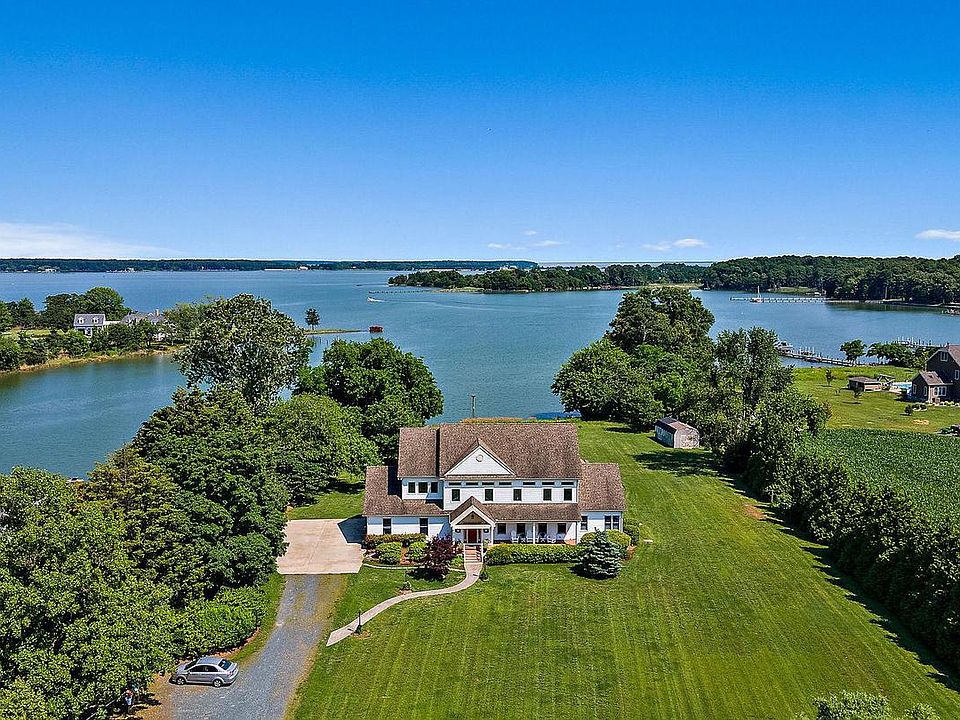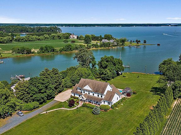 This one of a kind property is situated on an amazing waterfront lot with stunning panoramic views of Duns Cove and Harris Creek. As you drive down the 950 ft. sycamore-lined private lane, you will be in awe of this stunning custom home by Creek Point Builders, nestled on a private 3 acre waterfront oasis. The attention to detail is evident the moment you arrive. Cross the spacious front porch and enter the home, which features a foyer w/powder, large LR & DR w/tray ceiling, recessed lights & oversized windows. As you continue on, you will be struck by the waterfront view, visible through the sensational floor to ceiling wall of windows and sliders in the great room, which features 2-story ceilings overlooking the pool & waterfront. Turn your attention towards the gourmet kitchen, featuring an enormous curved breakfast bar, wet bar, huge center island w/dishwasher, double sink, filtered water dispenser, disposal & under the counter mixer cabinet. The 42" custom light cherry cabinets feature large pull out drawers, multiple spice racks, horizontal cookie sheet rack cabinet and so much more! The kitchen also features an over-the-oven faucet to fill pots, a Jenn-Air 6 burner gas stove/oven, stainless steel Zephyr multiple speed hood, convection wall oven, built-in microwave, KitchenAid side by side refrigerator w/ice maker. The chefs/bakers dream pantry features custom wood shelving, commercial grade refrigerator/freezer and liquor/wine storage shelf. The breakfast room also features a built-in desk area w/ 42" cabinets. Relax on the screened in porch with vaulted ceilings, overlooking the beautiful in-ground pool and patio with pergola. The spacious owners suite w/sitting area also overlooks the water, and features a large walk-in closet w/custom wood shelving, a huge owners bathroom w/double vanities, separate ceramic tile shower & air-injected corner tub. The upstairs features two large bedrooms that are joined by a Jack & Jill bathroom w/double vanities & ceramic tile floors. The 3rd upstairs bedroom has a private full bathroom and amazing views of the water and pergola area. The upstairs family room features a game table area and an overlook to the great room. The office is adjacent to the family room, which has stunning views of the front yard. The upstairs also features a sewing/craft area w/built-in custom cabinets & countertops, large locked owners closet, spacious storage area off the office area and pull down attic stairs leading to floored attic space. Enjoy the 250' of waterfront, riprapped to protect the waterfront from erosion. Also features sandy beach areas that allow for easy launching kayak's or paddle boards. Enjoy crabbing, fishing, bird watching & amazing sunrises/sunsets from your private pier which offers space for 3 large boats, jet skis or any other type of water craft. The pier is serviced by a dedicated 40amp power source! There are (2) 30amp power sources for larger boats, (2) GFCI outlets, (2) pier lights & a dedicated water source. The lift system is powered by 220 volts for both motors. There is a Rinnai tankless hot water system that services all the bathrooms & kitchen. The rented 1500 gallon propane tank supplies the fireplace, generator, furnace & tankless hot water system. There is a reverse osmosis system that provides all drinking water and is connected to the ice makers in the kitchen and the pantry. The 3 car side load garage features builtin cabinets w/a sink, access to crawl space, (3) insulated garage doors w/motors, a full bath w/ pool access, central vac & easy access to both electrical panels. The generator, pool pump and a/c compressors are hidden by well designed exclosures that offer ample pool supply storage. There is a large concrete driveway close to the house for easy access to the house. This amazing house has been lovingly & meticulously maintained by its only owners. Absolute stunning home & location! This one will not last long!