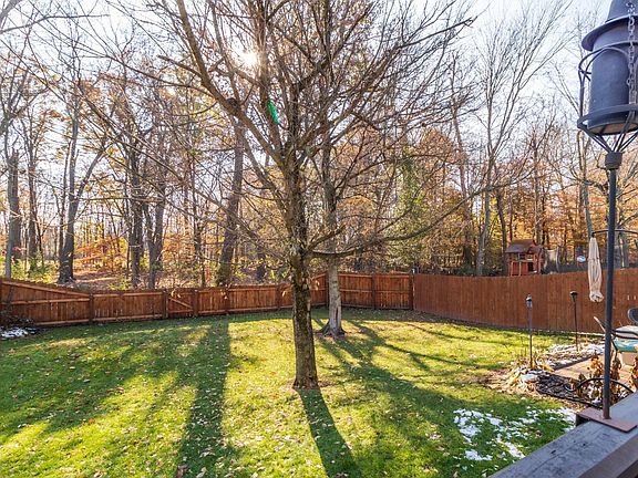 Private park like setting, fenced back yard while overlooking a gorgeous wooded view! WOW this 1 owner home boasts tons of natural light complimenting the open concept family rm, eating area and kitchen w/ granite counters, under-mount sink & newer stainless appliances (new dishwasher)! Welcoming 2 story foyer & large dining rm / living rm / office your choice, w/ a 2 sty bump out full of windows. Plentiful owner's suite has a walk-in closet & private ba w/ double vanity. Upstairs also includes 3 more generous sized bedrooms & updated guest ba. Finished basement offers rec room, work out room & storage! Extended living space outside w/ large paved patio (2 yrs), plus a deck, cedar fenced yard (3 yrs) overlooking wooded view. CW schools and close freeway access. Home Warranty offered.
