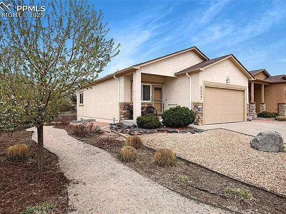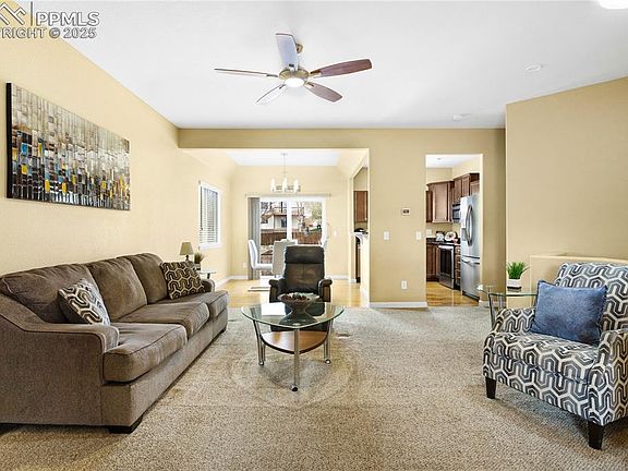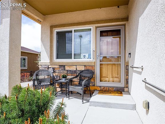 THIS BEAUTIFULLY MAINTAINED 3 BED, 3 BATH RANCH HOME WITH A 2-CAR GARAGE OFFERS THOUGHTFUL UPDATES AND FULL ADA ACCESSIBILITY WITH HANDRAILS THROUGHOUT. ENJOY OAK HARDWOOD FLOORS, MODERN LIGHT FIXTURES, AND ABUNDANT NATURAL LIGHT FROM ADDED SKYLIGHTS. THE KITCHEN FEATURES GRANITE COUNTERS, SOFT-CLOSE SOLID WOOD CABINETS, PULL-OUT DRAWERS, AND STAINLESS STEEL APPLIANCES. THE SPACIOUS MAIN LEVEL INCLUDES A MASTER SUITE WITH PRIVATE BATH AND WALK-IN CLOSET, WHILE THE FINISHED BASEMENT OFFERS A FAMILY ROOM, TWO BEDROOMS, LAUNDRY AREA, AND A FULL BATH. OUTSIDE, ENJOY LOW-MAINTENANCE LIVING WITH A XERISCAPED FRONT AND BACK YARD, COMPLETE WITH A DRIP IRRIGATION SYSTEM AND STUCCO EXTERIOR. THE BACKYARD BACKS TO A SERENE CREEK AND WALKING TRAIL. ALL OF THIS WITH VIEWS OF PIKES PEAK AND JUST MINUTES FROM THE POWERS CORRIDOR, WITH CONVENIENT ACCESS TO SHOPPING, DINING, AND ENTERTAINMENT. MODERN COMFORTS INCLUDE ELECTRONIC DIMMER SWITCHES, A WI-FI-ENABLED THERMOSTAT, AND MORE. THIS HOME IS MOVE-IN READY AND DESIGNED WITH BOTH BEAUTY AND FUNCTIONALITY IN MIND.