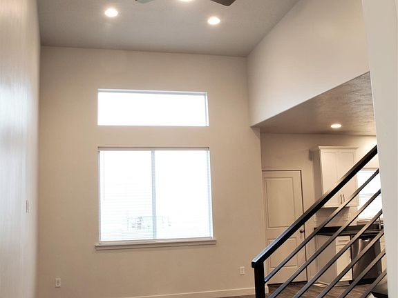 This contemporary town home was built in 2018 as part of the Evan's Ranch development in Eagle Mountain. There is a neighborhood swimming pool, hot tub, playground for residents, elementary school around the block, and an HOA that takes care of all community areas (including all yard care). This particular unit has beautiful views from the master bedroom and downstairs living areas and kitchen looking out over Utah Lake, Provo Canyon and Mount Timpanogos in the distance. It has easy access to both Redwood Road and Pioneer Crossing, making it a convenient for commuting. It's within a few short minutes of a grocery and hardware store, restaurants, local businesses, a gas station, and library. Directly behind the neighborhood is a trail head for off road vehicles, and to the south is unincorporated land with a view of beautiful hills. This is an end unit with open grass on the side and behind, and a spacious driveway and sidewalk. The total square footage is 2100, including an unfinished basement. (Total finished square feet is 1485.) The main floor has a large coat closet, family/living area with tall vaulted ceilings, kitchen with all appliances included, half bathroom, pantry, and door to the two-car garage. In back is a private fenced in patio area with cement. Upstairs is a master bedroom with two closets (one that is a walk in), master bathroom, 2 bedrooms with large closets, second full bathroom, storage closet, and washer and dryer area. (Washer and dryer are not included it has electric hook ups.) We run a credit and background check as part of our application process. We accept some animals on a case by case basis, but charge an additional pet deposit and monthly pet fee. Initial lease is 12 months, usually going to a month to month lease after that. Deposit is $1695, or one month's rent. Please contact me if you are interested and I can set up a time to show you the home. Initial lease is 12 months, then month to month after that. Landlord pays HOA fees; tenant pays utilities