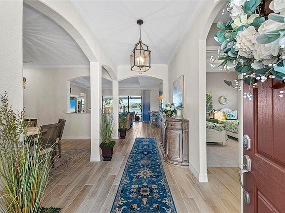 Stunning Lakefront Home with Premier View in Country Club East, where elegance meets tranquility in the heart of Lakewood Ranch. This beautifully updated home boasts the best lake view in the entire neighborhood—a true showstopper that delivers breathtaking views and a peaceful backdrop every day. Step inside to discover a thoughtfully designed floor plan filled with natural light and upscale finishes. The lanai has been transformed with a brand new panoramic screen, offering unobstructed views of the water—perfect for relaxing or entertaining at the outdoor kitchen. You'll also love the charming wood ceiling detail on the lanai and front porch, adding warm character and curb appeal. The interior features updated countertops that enhance the bathroom’s modern style, making it a relaxing retreat. Every space in this home has been meticulously maintained and recently enhanced, offering a move-in ready experience for the next lucky homeowner. Located within the gates of Country Club East, residents enjoy resort-style amenities, walking trails, and close proximity to world-class golf, shopping, dining, and top-rated schools. The Longcliffe area of Country Club East has an active social committee that brings residents together for lots of different activities. Don’t miss this rare opportunity to own a slice of paradise with unmatched lake views and fresh, stylish updates.