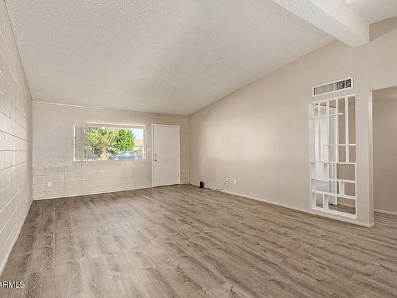 Unit 2 - Recently renovated and conveniently located in the Thomas/Scottsdale Road corridor. VAULTED ceilings! This unit features two spacious bedrooms and 1.5 bathrooms. One bedroom includes a half bath en suite, while the other large bedroom is situated on the opposite side of the unit with access to a full bathroom. The kitchen comes with a pantry an d a stainless-steel refrigerator. Additionally, there is an extended width covered patio that accommodates two cars. The laundry area is just steps away from the unit and is shared with three units. Landlord maintains the front yard.