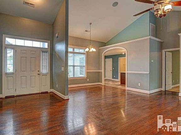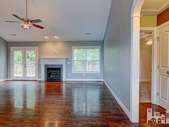 Welcome to this beautiful low maintenance 4 bedroom, 2 bath home in Carrington Woods. Home offers a split bedroom plan with many custom features. Dark wood cabinets in kitchen with nice granite countertops, subway tile back splash plus kitchen island for extra storage and space to prep. Whirlpool Stainless steel appliances. Great room with vaulted ceiling and gas log fireplace, and adjacent dining room all floored with engineered wood flooring. Tile flooring in all baths, kitchen and laundry room. Inviting master suite includes large master bedroom and a master bath w/ separate soaking tub and shower. Double vanity with granite counter and vessel sinks. Upgraded plumbing and lighting fixtures. Closet space is not an issue with two large closets in the master. Vaulted ceiling in bedroom 2 along with new carpet and paint in bedrooms 2 and 3. Bonus room over 2 car garage could be 4th bedroom. Huge deck in back overlooking privacy fenced backyard backing up to woods.
