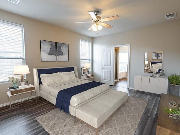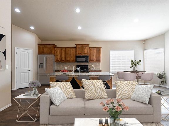Practically New 4Bed/2Bath Home in Parks Bell Ranch. Gourmet Kitchen with Honey Oak Cabinets & Granite Countertops. Open Layout with tons of Windows and high ceilings. Terrific Floorplan, Sequestered Owners Retreat with Dual Sinks walk-in closet. Generous sized back yard with Covered Patio. Convenient location to 151 and Restaurants. Dont miss this VALUE! OWNED RO Valued at $2000 to pass with sale WALK DOWN TO COMMUNITY POOL!!! Great Value and condition! MUST SEE! Vacant Go Show! Sellers Loss