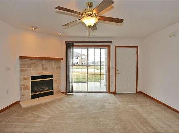 First floor condo with 2-car attached garage featuring built-in cabinets for extra storage. Living room faces west with patio doors to view sunsets. Gas Fireplace and dining area, kitchen offers oak cabinets, all appliances included, along with ceiling fan, window treatments. and laundry. Two spacious bedrooms, MBR has WIC, and oversized shower stall. Six panel doors and neutral dcor. No stairs, no yard, no worries. Immediate occupancy.