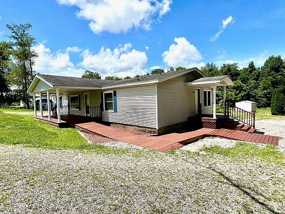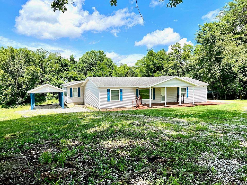 Convenient to Crane, Bloomington & Bedford, this 3 bed, 2 bath home is situated on 2 acres with 2 carports, a shed, and both front & back decks, recently stained & ready for entertaining. This property features new BEE windows in 2021, and had previously undergone a stickbuilt addition years ago to add the 3rd bed with a separate kitchenette and bath to back left side of home. Property has 2 separate electric and water meters, as well as 2 septic systems as a single wide home previously set behind the main residence and new owner could possibly add another single wide or camper for future rental income. This is an estate sale, being sold as-is.