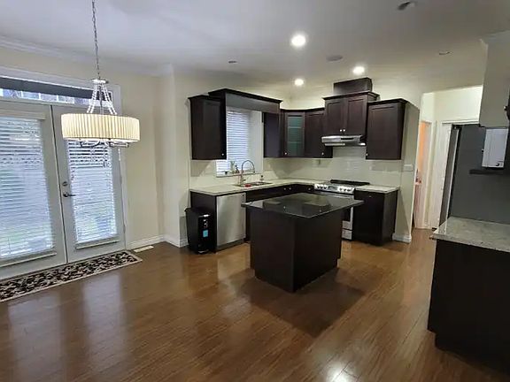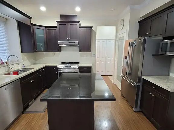 Walk into this home to a spacious entryway, where you are greeted to your left with a large dining room. This home is modern with open concept living, gas fireplace, crown molding french doors to the backyard and a fabulous kitchen with granite countertops and large island.Conveniently located on the main floor you have a bathroom , laundry room and entry to garage with extra storage. On the second floor you have the large master bedroom with semi vaulted ceiling with an ensuite that has separate tub and shower. This floor has 3 more large sized bedrooms with deep closets and 1 main separate large bathroom.The basement suite has its own separate fridge, stove, microwave and dishwasher. It also has a large 4-piece bathroom and it's own access to the backyard.
