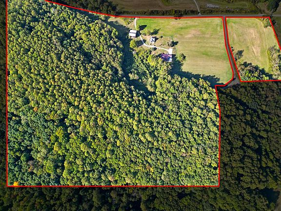 This deer & turkey oasis is tucked in the quiet hills of eastern Ohio approximately 20 miles east of Coshocton. The 53.8 acres of land will not disappoint: 36 acres of mature hardwoods, 4 acres of brush habitat, & 12 acres of planted hay fields. There are natural springs on the property that can be utilized for livestock watering, gardening, food plots, etc. This land has tons of character including gentle slopes, steep ravines, 260' of elevation change, but the property is laid out to be very user-friendly. The driveway is very accessible (not steep) & the 2,660 sq ft ranch home and barn are nestled on a flat overlooking the bottom hayfields. Existing Gas well heats the home & conveys to the buyer. 1,992 feet of road frontage makes