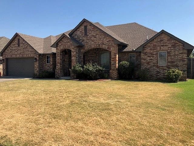 Beautifully appointed brick home with private back yard, Open Concept floor plan, Study, 3 Bedrooms, 2 Baths, Storm Shelter and Fireplace. Kitchen features granite counters, walk-in pantry, breakfast bar and stainless appliances. You'll love the Master Suite with double vanities, Jacuzzi Tub and separate shower ... plus a HUGE walk-in closet! This lovely family home built in 2014 offers easy access to shopping, restaurants and all conveniences.