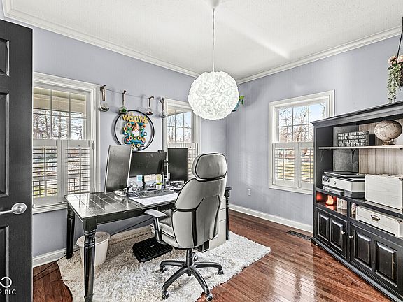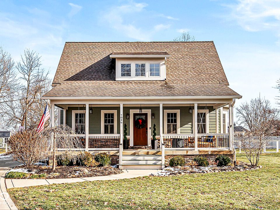 Welcome home to this stunning 5 bedroom, 4 full bath, 3,446 sq ft home located in the desirable Trillium Woods neighborhood of Pendleton, sitting on a spacious .44-acre lot. From the moment you arrive, the large, inviting front porch sets the tone. Step inside to find hardwood floors throughout the home and a thoughtful layout designed for both everyday living and entertaining. A formal dining room sits just off the entry, while a main-level bedroom with direct access to a full bath featuring a tiled shower offers flexibility for guests or a home office. The primary suite on the main level is a true retreat, complete with an electric fireplace, en-suite bath with dual vanities, jetted tub, full shower, and two closets. The laundry room is conveniently located off the primary bath and includes a laundry chute from the upstairs loft. Nearby, the mudroom with built-in bench provides easy access to the two-car garage. The heart of the home is the spacious kitchen, featuring granite countertops, stainless steel appliances, farmhouse-style sink, a built-in table, and a coffee bar-perfect for hosting or casual mornings. The kitchen opens to the great room with a wood-burning fireplace and access to the screened-in back porch, ideal for relaxing year-round. Upstairs, you'll find three additional bedrooms and a versatile loft/game room. Two bedrooms feature built-ins and large closets, connected by a Jack-and-Jill bath with dual granite vanities and a private tub/toilet area. Another bedroom includes a wood accent wall, large closet, and full bath. The loft offers built-ins and a beverage chiller, plus access to a large walk-in attic storage area. Outside, enjoy the fully fenced backyard with a fire pit, covered grilling area, and storage barn-plenty of room to relax, entertain, or play. This home truly delivers on space, quality finishes, and functionality-a rare find in Pendleton.