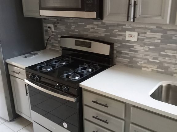Tasteful ceramic tile, granite like kitchen counters, stainless steel appliances.nj