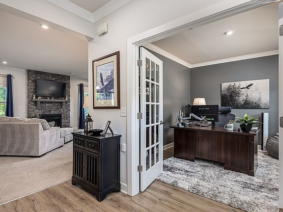 **2.25% ASSUMABLE LOAN** Open Concept 5 bedroom, 3 bath home perfect for the Modern Family with Peaceful, Wooded Back Yard Views, Usable backyard with Irrigation, near a Cul-de-Sac on top of the Picturesque Sky Meadow Drive! Upon entering the home from the Extended Covered Front Porch onto the Foyer and Office then leading you into the Large Family Room flooded with Natural Light, a Stacked Stone Fireplace opening to the spacious kitchen with long kitchen island, pull out shelves in the cabinets, a gas stove, two ovens, custom shelving in the pantry and so much more. The main floor also features a downstairs secondary bedroom with full bath ensuite and walk in shower. Upstairs you will find the Large Primary Suite with private back yard views, His and Hers Custom Closets, Three additional bedrooms, a full secondary bath, and laundry with cabinets for convenience. The 3 car garage w/ epoxy floors,, built in storage, and tankless water heater.