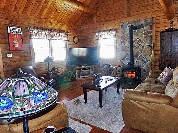 JUST APPRAISED AND PRICED TO SELL. Down a country lane you will find this PRISTINE LOG HOME on 20.99 acres. Step thru the front door and take in the awe of the vaulted ceiling. The open floor plan lets you gather at the end of a long day & the kitchen is a cooks dream with it's upgrades. Start a fire then head upstairs to the loft where you can watch tv, check your emails or take a nap. Back on the first floor is your master bedroom and bathroom that rivals any spa. Need a workout, head to the lower level. This floor has your laundry, another bath and more room to relax. Ready for some fresh air or a swim? Outdoors on the sprawling 20.99 acres is an inground salt water pool and furnished pool house complete with electric and accessories, no expense spared for your enjoyment here! Your horses will love their space too in the large barn and the 5 pastures with electric fencing. There is a kennel for your dogs and a 2 stall garage. There are ATV/Snowmobile and horse trails all around you here. Wait that's not all, Solar panels on the this property will cut your electric bills. All this privacy is just minutes from DuBois and Brookville. Don't wait it won't last long, Call for your tour!