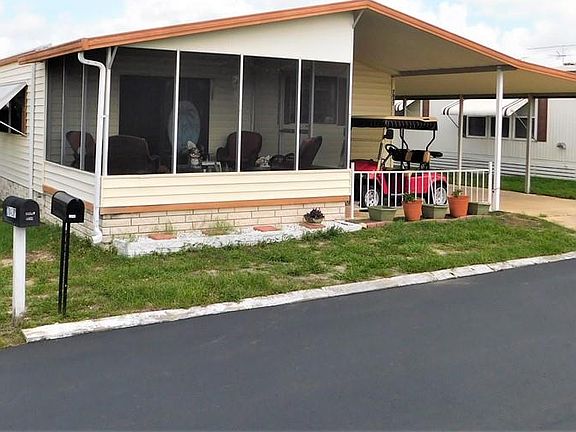 Want a winter home? Check out this exceptional home in Spanish Trails 55+ community where you own your land! Located in a desirable area in the heart of the community with a low monthly fee of $75/month. This beautifully maintained 2br/2ba double wide offers exceptional kitchen, bright dining room, cozy living room, and screened in patio to enjoy the sunshine. Home has many upgrades and a desirable OPEN FLOOR PLAN that flows perfectly throughout. This magnificent home features laminate flooring, beautiful kitchen, New roof in 2013, newer A/C, new hot water tank, laundry off carport includes washer/dryer, outdoor covered patio, and beautifully decorated. Kitchen and dining room offers open great room feel, beautiful appliances, and laminates floors. Both bedrooms are bright and offer ample space. The master retreat offers step in shower, and large walk in closet. Second bedroom has ample storage and ceiling fan. Your low monthly fee gets you access to all the subdivision's amenities which includes access to heated pool, spa, club house and community functions. Two pets permitted with limits and trash pick-up covered in fee. Call for an appointment today.
