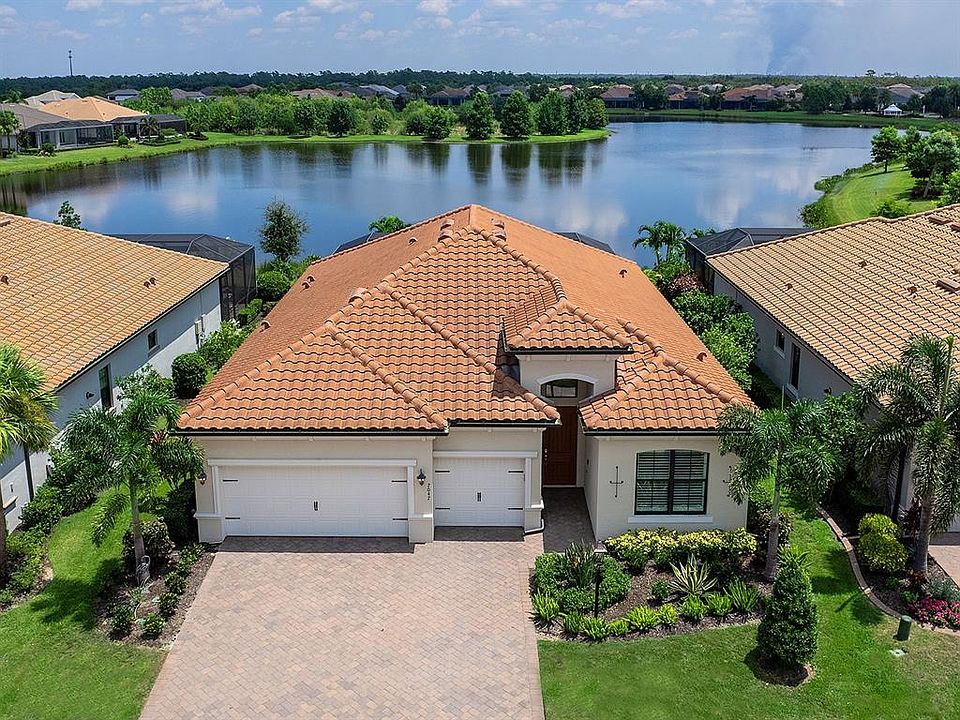 Welcome to 4047 Highgate Lane. Discover this exceptional WCI home resembling a model, featuring unparalleled lake vistas and a seamless integration of indoor and outdoor living spaces, elegantly crafted for your enjoyment. In the maintenance-free section of Country Club East's gated golfing community, featuring recent upgrades and added features. Upon entering the foyer, you're immediately greeted by a breathtaking vista through the clear-view panoramic pool cage screen. Serene water views and distant preserve vistas unfold, offering a secluded atmosphere without sight of neighboring homes. This meticulously designed four-bedroom, three-bath residence features an open-concept great room and kitchen, ideal for entertaining. The area effortlessly extends onto the screened paver lanai, featuring a saltwater heated pool, spa and an expansive covered entertainment space equipped with an outdoor kitchen including a stainless steel grill with hood and beverage refrigerator. The formal dining room is conveniently next to the kitchen, ideal for seamless entertaining. The kitchen itself is a chef’s delight, offering stainless steel appliances, a natural gas cooktop, one level quartz countertops, a pantry, under-cabinet lighting, reverse osmosis water system and a sizable breakfast bar. A spacious dinette area adds convenience for everyday meals. The luxurious primary suite is a retreat, featuring a tray ceiling, cozy sitting area, a large walk-in closet with custom organizational systems, and a spa-like bath with a garden tub and walk-in shower. A bedroom with en suite and with a private bath and two additional guest bedrooms share proximity to the third full bath. Additional highlights not to be missed include impact windows and front entry door, intricate wood detailing, crown moldings, a whole-house water filtration system, a three-car garage with ample storage and tile plank flooring in all common areas. Enjoy the added benefits of plantation shutters, custom window treatments, designer light fixtures and ceiling fans, lush landscaping, a paver lanai and driveway. This home offers a harmonious blend of luxury, comfort and security in a prestigious community setting with no flood insurance required. Enjoy the resort lifestyle in Country Club East with three community pools and resident-only amenity center, The Retreat, featuring a resort-style and lap pool with a water feature, fitness facility, social gathering space and outdoor kitchen, and numerous nature trails for walking and biking. All this is included in your HOA fees. Other packages are available to belong to the LWR Golf and Country Club that include golf, fitness, dining and social-type memberships. Close to the new Waterside Shops and The Mall at UTC area also provides A-rated schools, shopping, fine dining, medical facilities, Lakewood Ranch Medical Center, arts and culture, and famous white-sand beaches. Everything is here! Tax amount includes CDD.