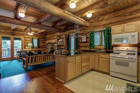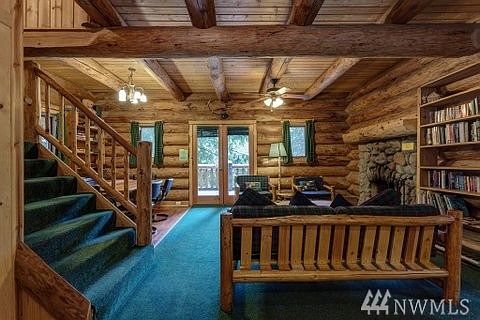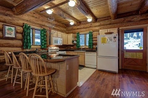 True Log Home in the gated community of Snowline. Large lot with outdoor hot tub, fire pit, and lots of room. This 3 bed home features a wood fireplace, gas freestanding stove, forced air heat, laundry room, granite counters, and security system. Rec and laundry room downstairs, the main floor has an open feel with a large front deck. The upstairs bedrooms all have balcony access. This very well maintained home will make your dreams come true. Snowline is a gated community with many amenities.