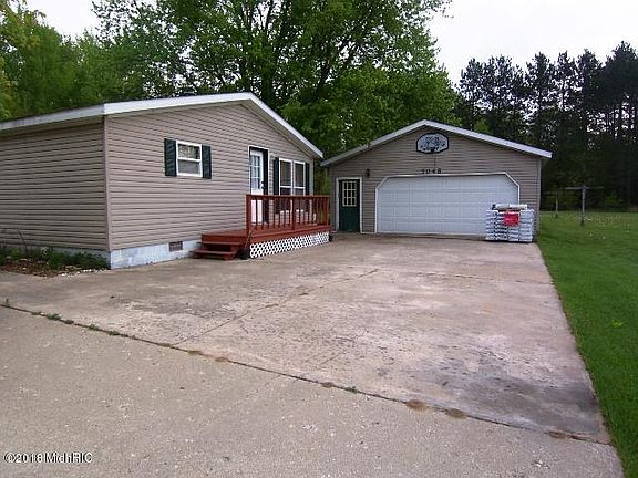 1.75 acres with 1400 sq.ft. of living area that features an open living area with cathedral ceilings, kitchen with snack bar & pantry and 4 bedrooms/2 baths. A great location on a paved road just outside the City limits. A large deck in the back for relaxing and watching the wildlife. Also includes an adjoining parcel with hook-up for trailer. The 2 car garage has a cement driveway and there are 2 out buildings for storage. This home has everything! 4th bedroom can be a den/office or bedroom.