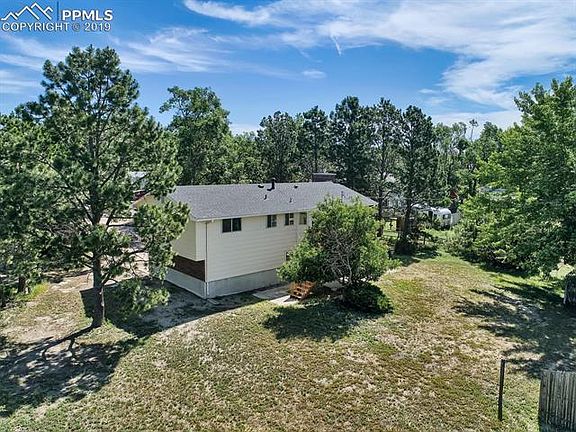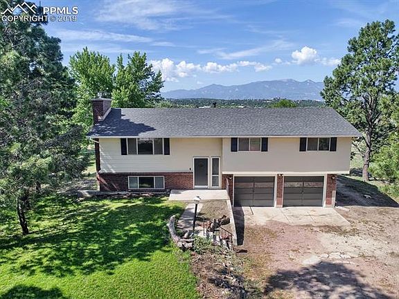 Opportunity to move into rustic Falcon Estates in Colorado Springs! Country living in the city with District 20 schools. This 3 bedroom, 3 bath, 2 car garage is located at the end of a cul-de-sac with incredible mountain views and lots of privacy. Home is on 1 acre with mature trees and zoned for horses, yet easy access to Woodmen Road near N. Academy Blvd. Over 2,000 sq. ft. with central heat and air, newly painted inside and out, and some updates already done. This home has been in the family since the 1970s, and can use some updates, cosmetic remodeling, and improvements. New owners may consider replacing carpet and possibly even installing newer windows at some point, but this could be done while living there and as their timeframe/finances allow. And there are great possibilities for this home and property - to have over an acre zoned for horses within Colorado Springs city limits and within walking distance to shops and restaurants is unique. The great room in basement has an office nook that used to be a 4th bedroom and could easily be converted back. Wood burning fireplace has gas insert which can be removed. The home has city water and sewer (many homes in Falcon Estates still have septic), new roof in 2012, new breaker panel in 2018, new back deck in 2018, sprinkler system in 2018, exterior paint in 2018, interior paint in 2019, RV parking and hook-up already in place. Detached garage or stables can be built in compliance with covenants. Minimum lot size for this area is 1 acre; lots of land and trees surrounding the home! This special neighborhood is reminiscent of a quieter, gentler time, when kids played outside with lots of room to roam and neighbors kept a watchful eye on them.